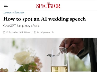 Wedding speech clichés reproduce like rabbits on ChatGPT. ‘Marriage is like a seesaw: it only works if both of you lean in at the right time.’ We received three of those last week alone. And two of these: ‘I’m not losing a daughter at all – I’m gaining someone else to help me finally understand her.’